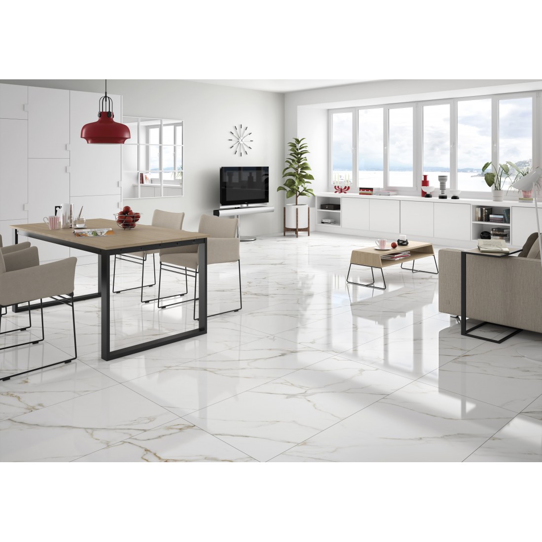 Introducing the Gold White Polished tile, a stunning masterpiece in porcelain. With its luxurious Carrara marble effect and impressive 60x120 cm size, this tile exudes elegance and sophistication. Its polished finish adds a touch of shine, making it the perfect choice for those seeking a fancy and extravagant look.